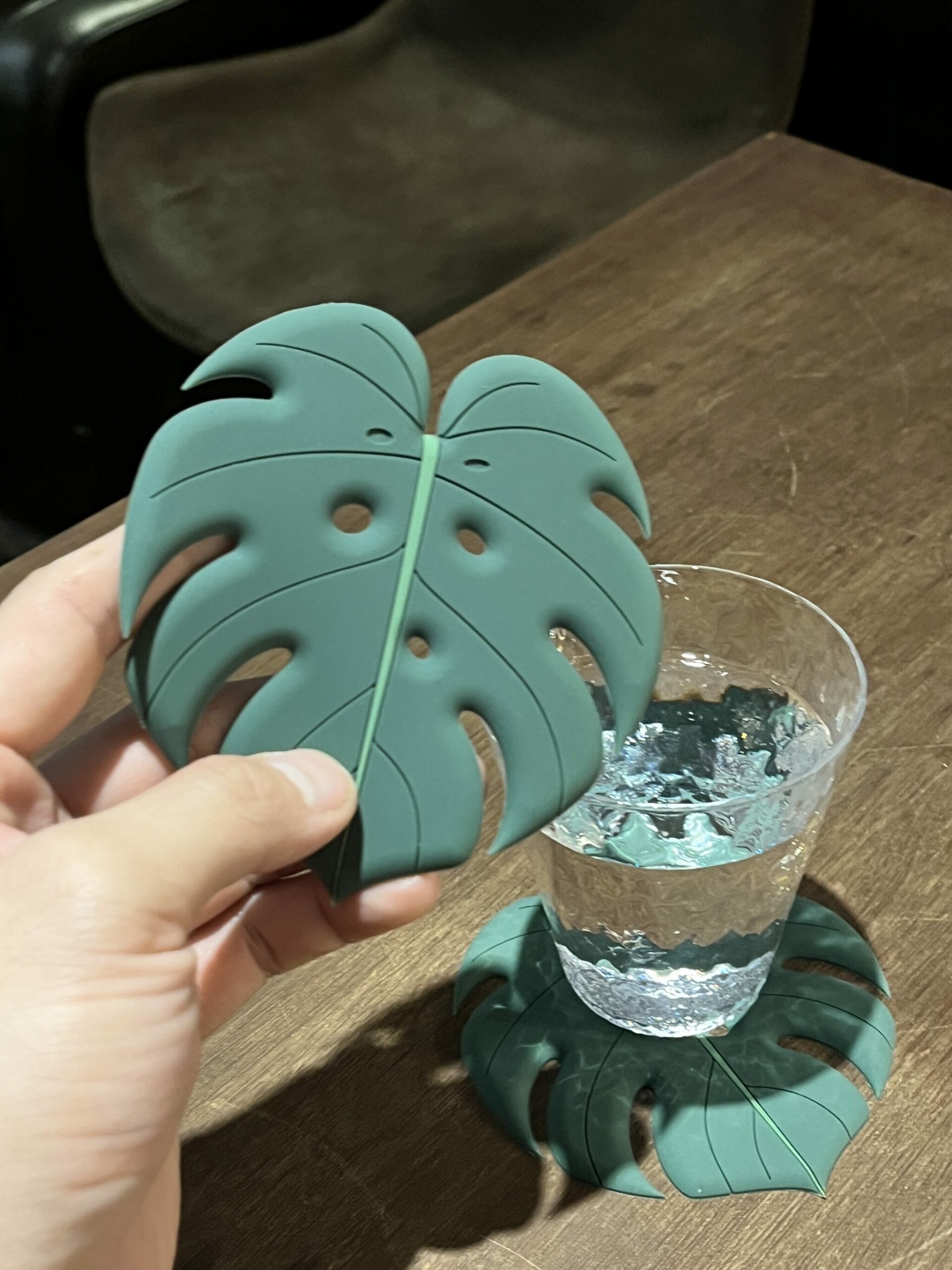 龜背芋軟膠杯墊,防水可清洗材質,葉脈刻痕增加了導水功能。